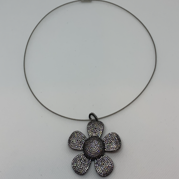 Large Micro Mini Pave CZ Flower Charm on a Magnetic Choker. Can be removed and worn on your own Chain.